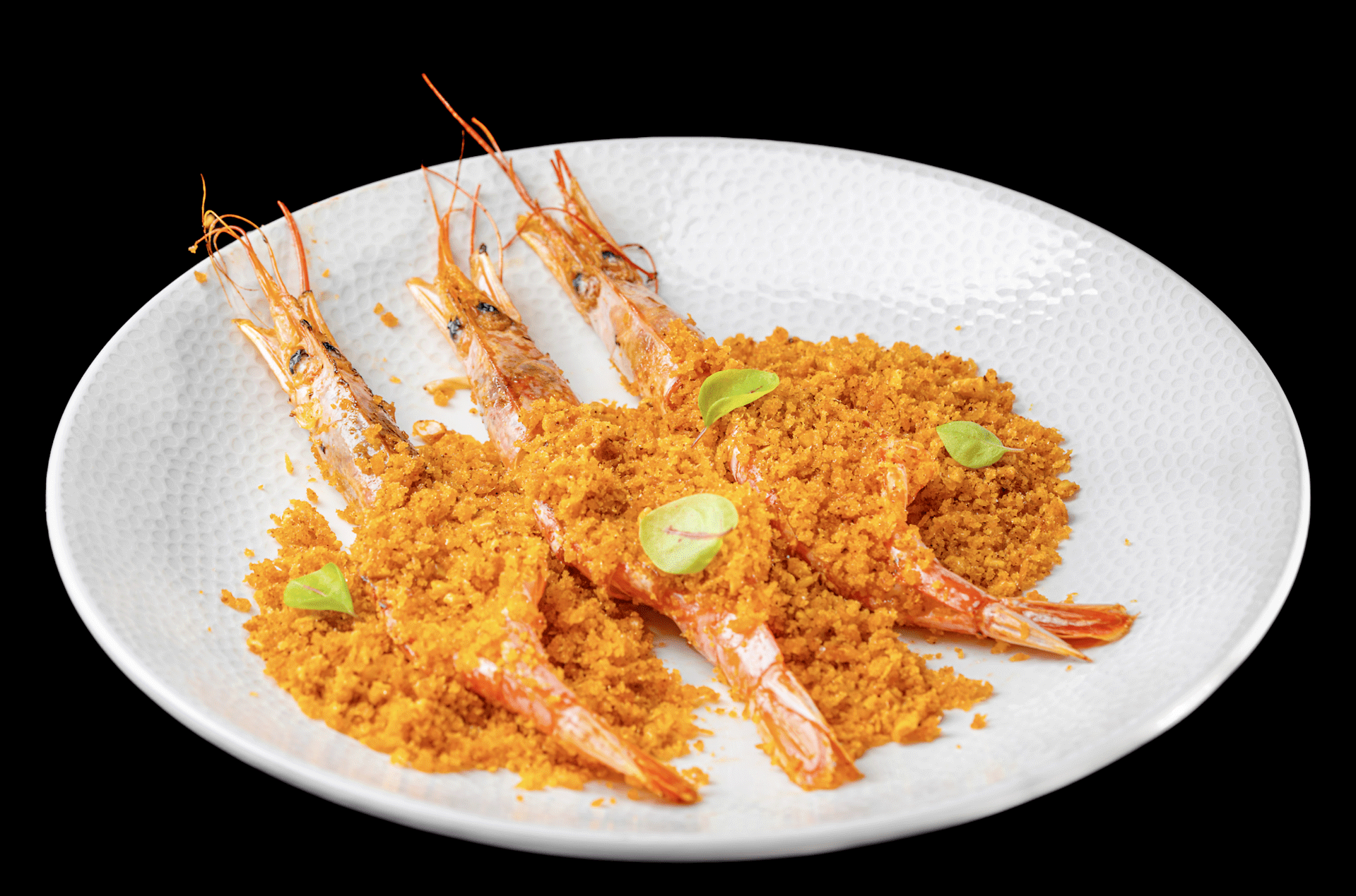 Gamberoni leggermente piccanti, panko e aglio.