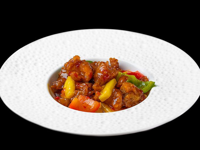 Pollo, salsa agrodolce, verdure