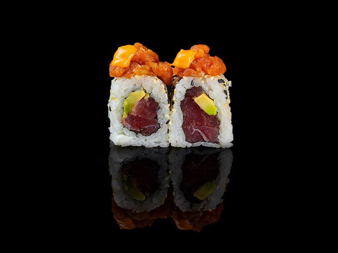 Tonno crudo, avocado, tartare di tonno salmone e salsa maio spicy