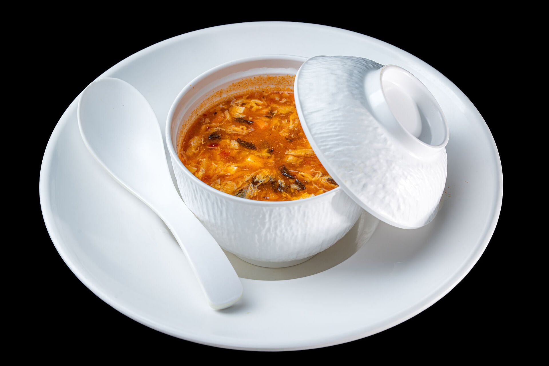 Zuppa di verdure con tofu, uovo in salsa agropiccante